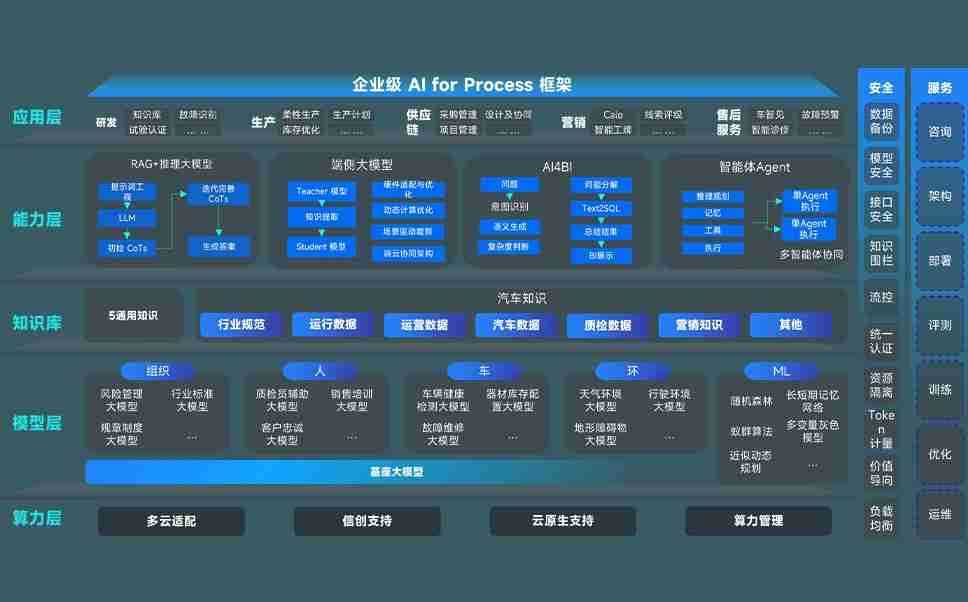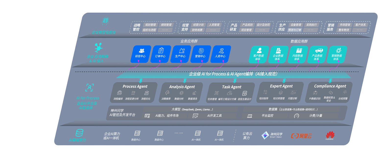 端到端的一站式AI工作空间深度融合了从企业战略规划到日常经营的全流程业务板块,,,,定向解决车企内部领域多、、部门多、、链条长、、、场景碎片化等难题,,,支持车企快速构建以AI为核心的生产力写作体系,,实现任务执行与AI能力的无缝集成与交互