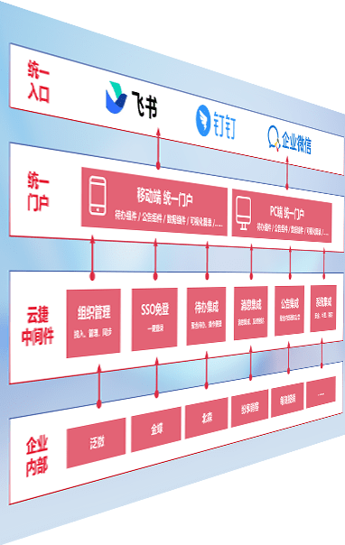 对协作平台提供支持服务,,支持企业应用与协作平台对接,,,,包含组织同步、、消息集成、、、待办集成等。。。支持目前主流的协作平台:钉钉、、、企微和飞书。。。。